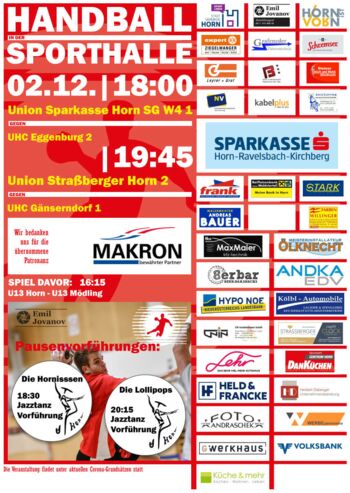 Samstag ,02.12.2023, 19:450hUnion Straßberger Horn gegen UHC GänserndorfPatronanz: Makron