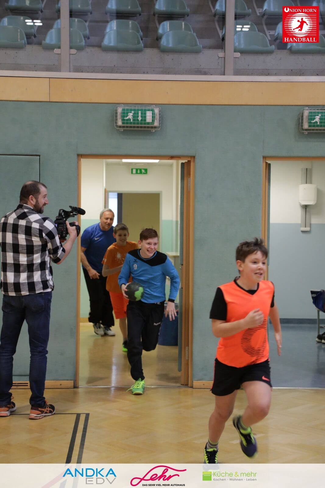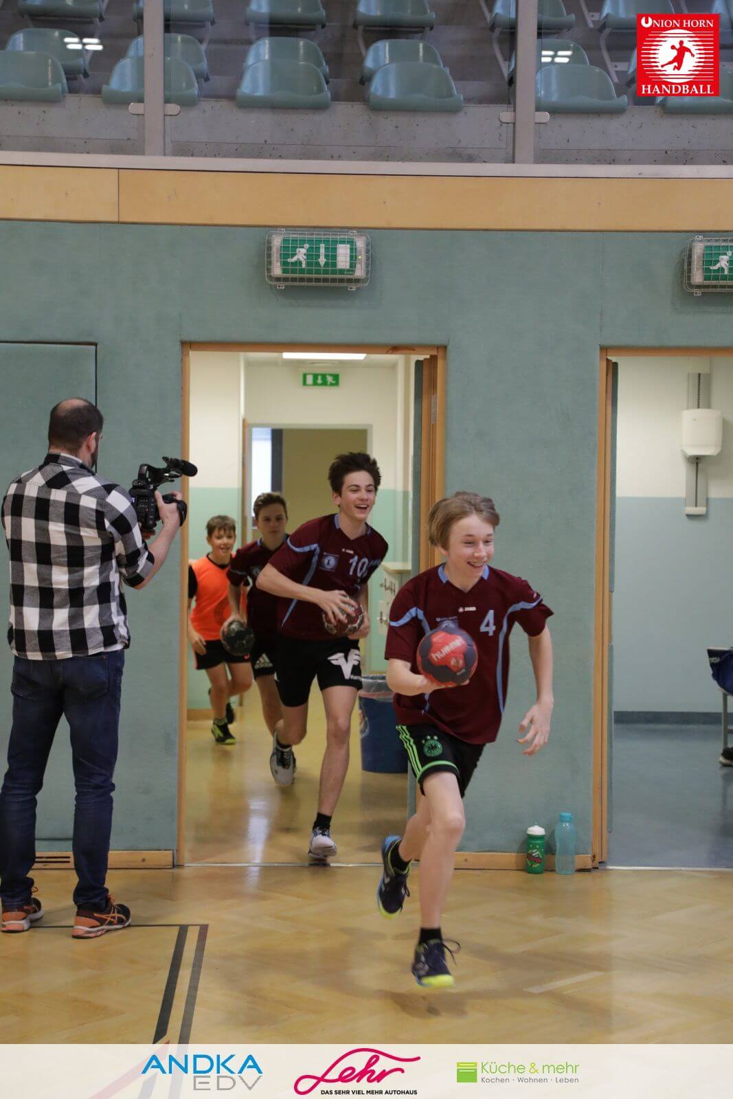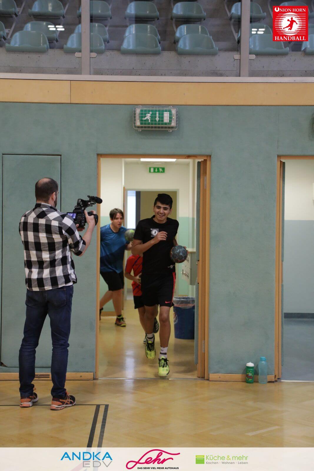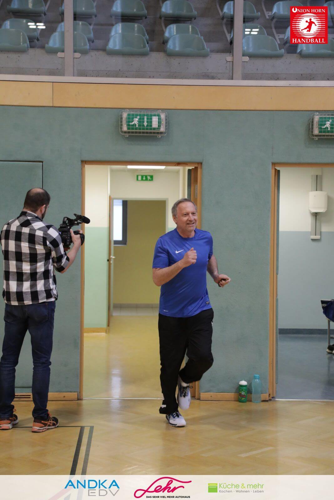 Gleich danach ein freudiges Rauslaufen in die Halle um mit der Aufwärmrunde zu beginnen.