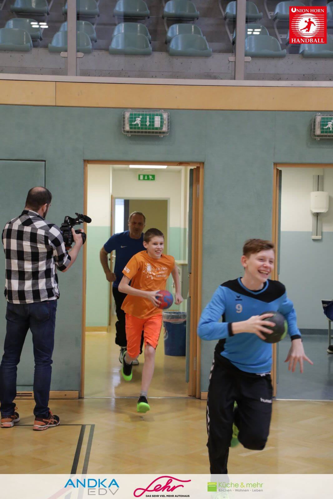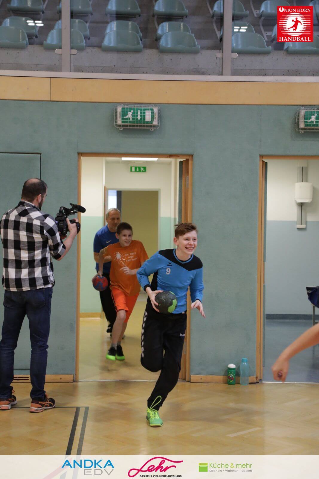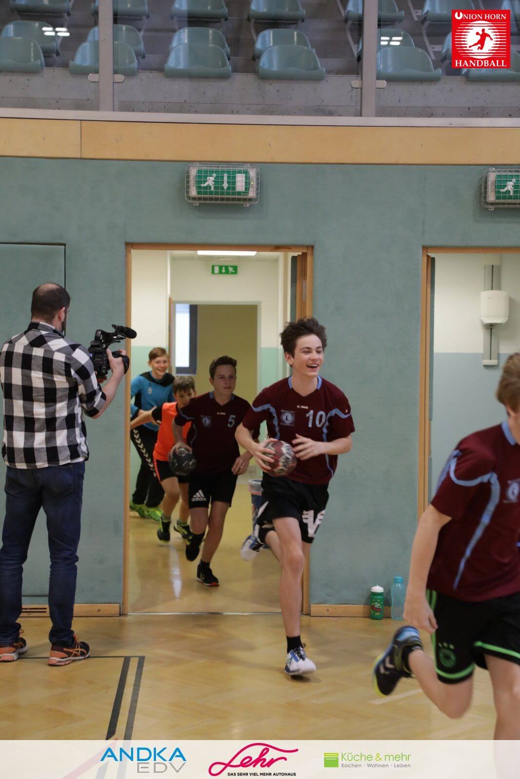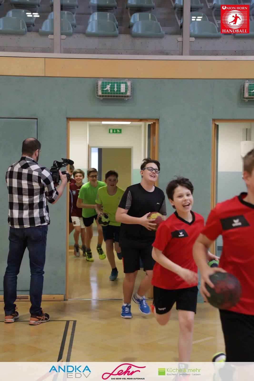 Gleich danach ein freudiges Rauslaufen in die Halle um mit der Aufwärmrunde zu beginnen.