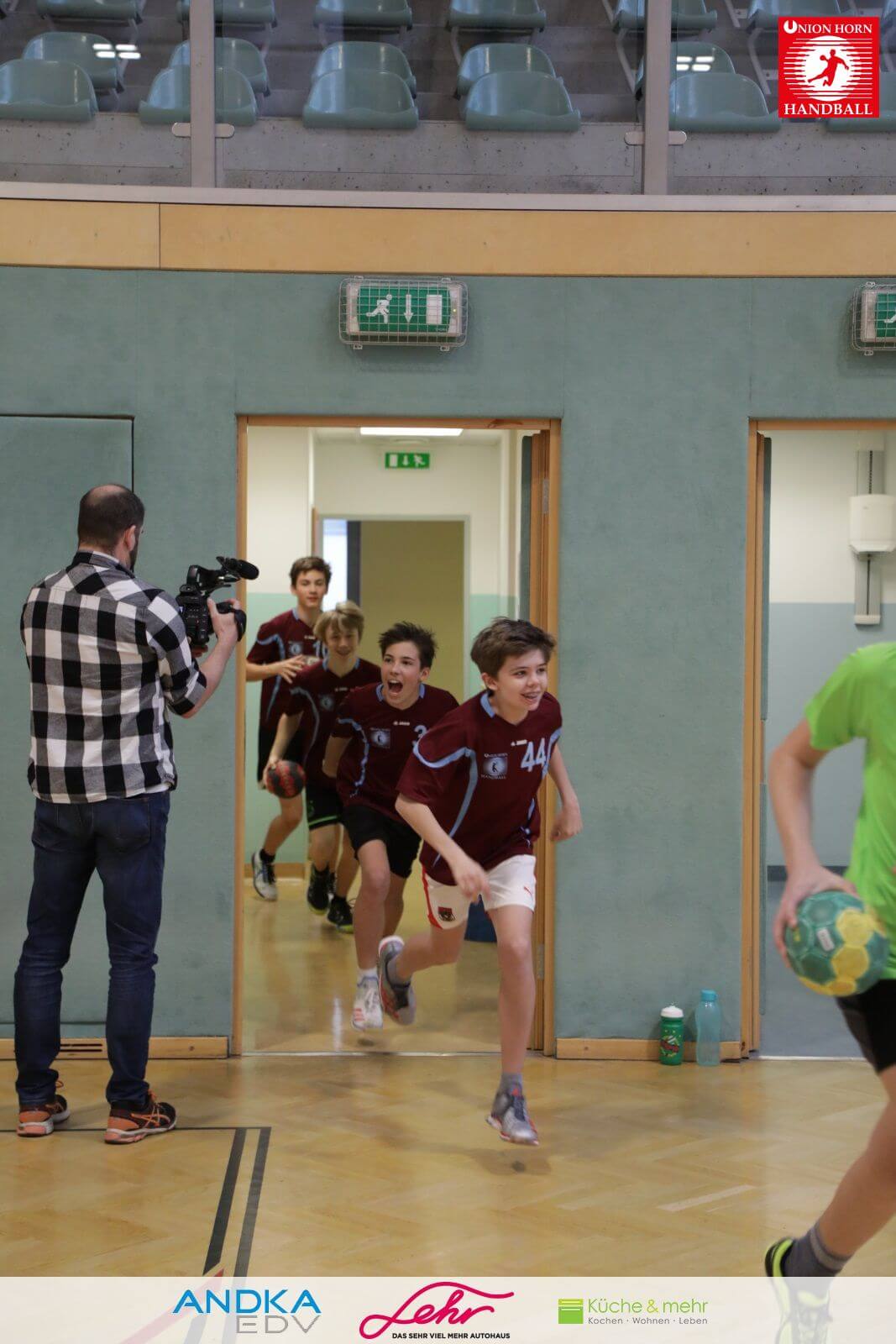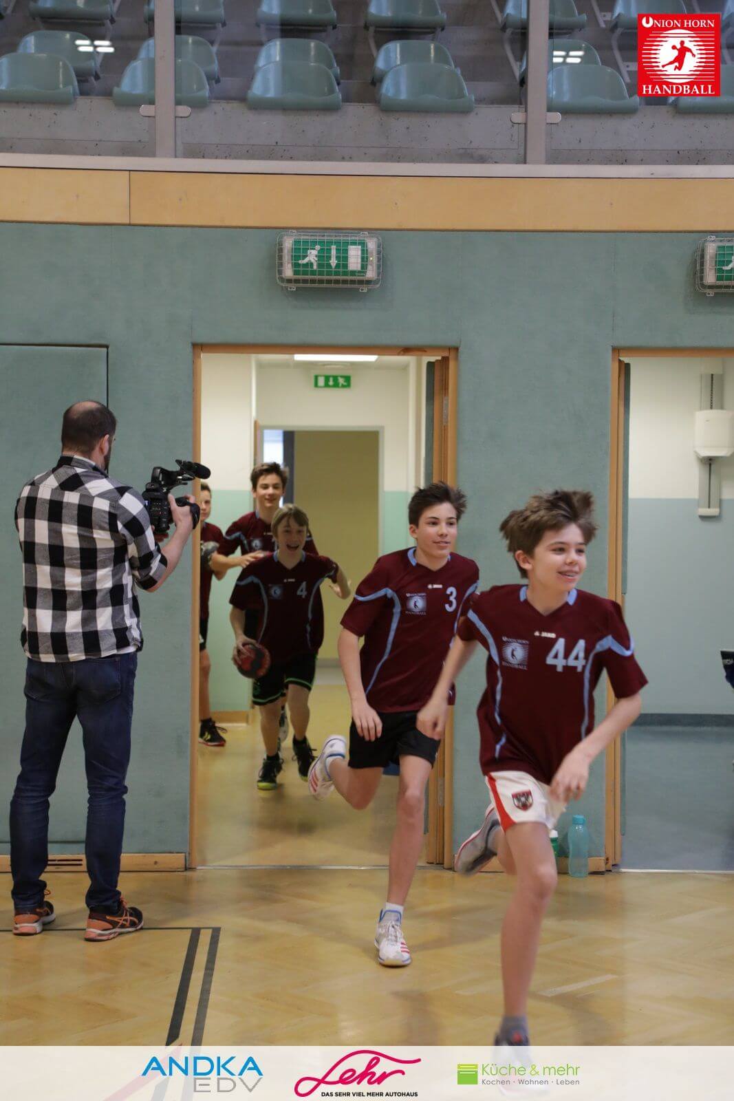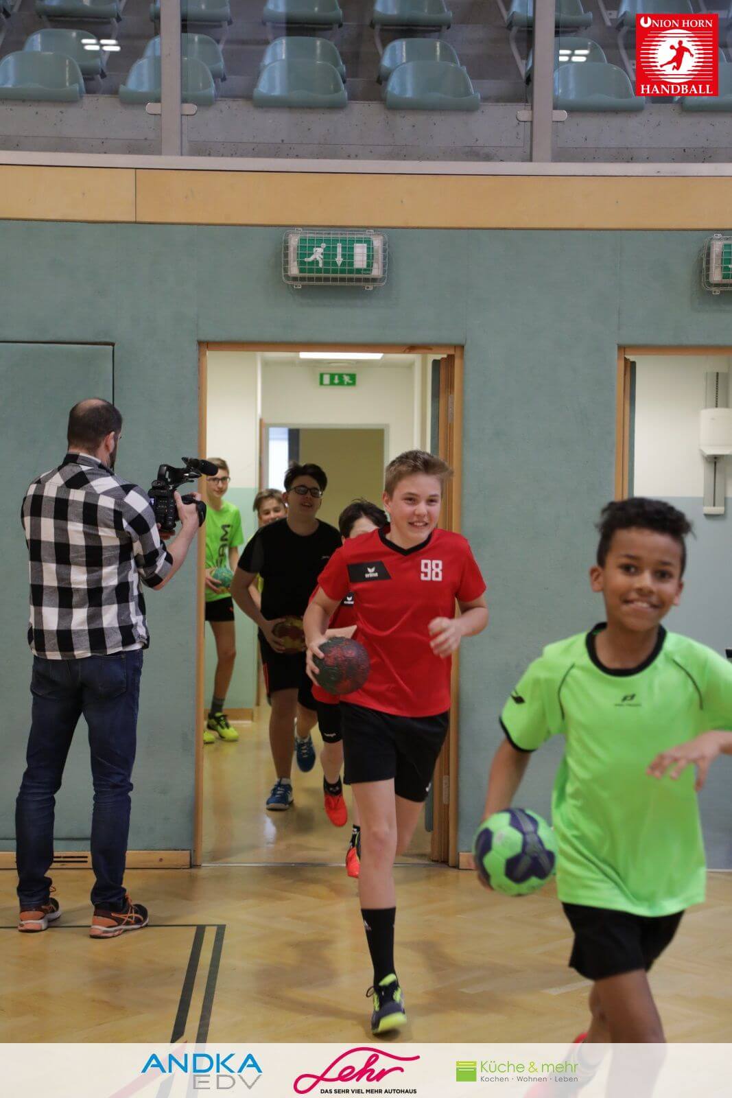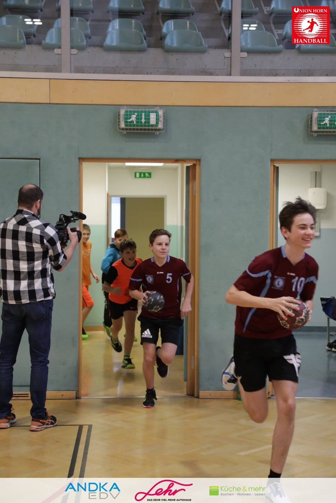 Gleich danach ein freudiges Rauslaufen in die Halle um mit der Aufwärmrunde zu beginnen.