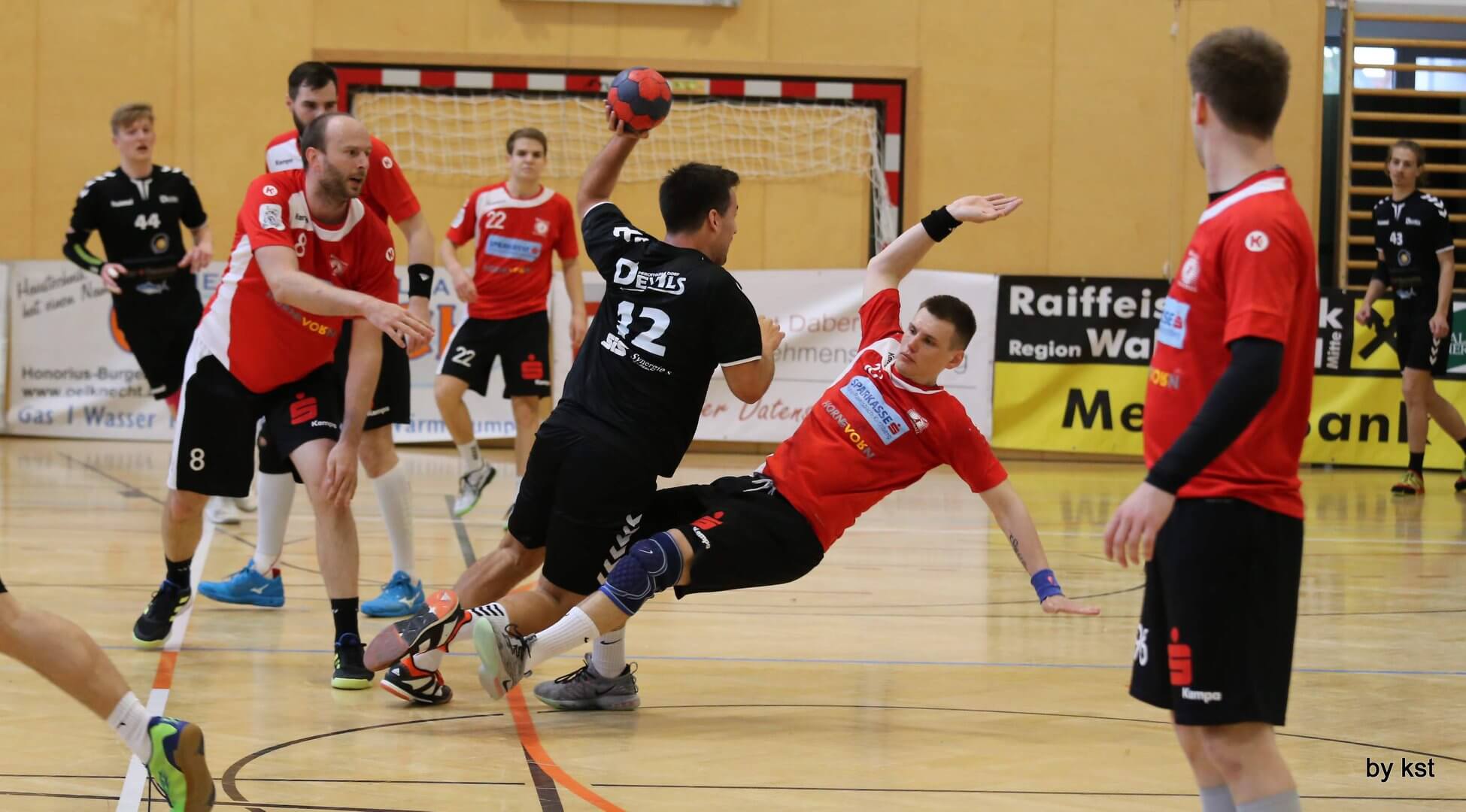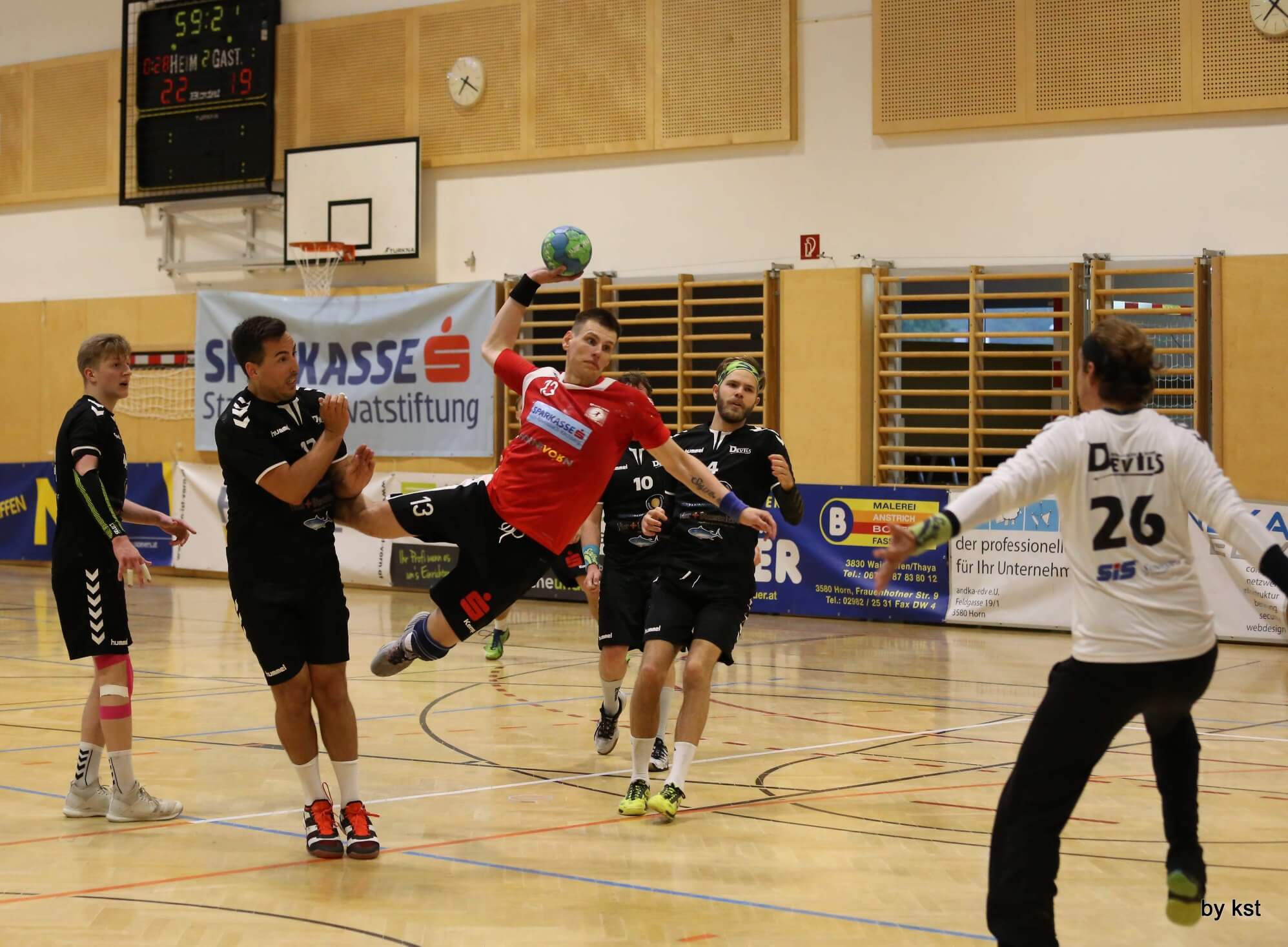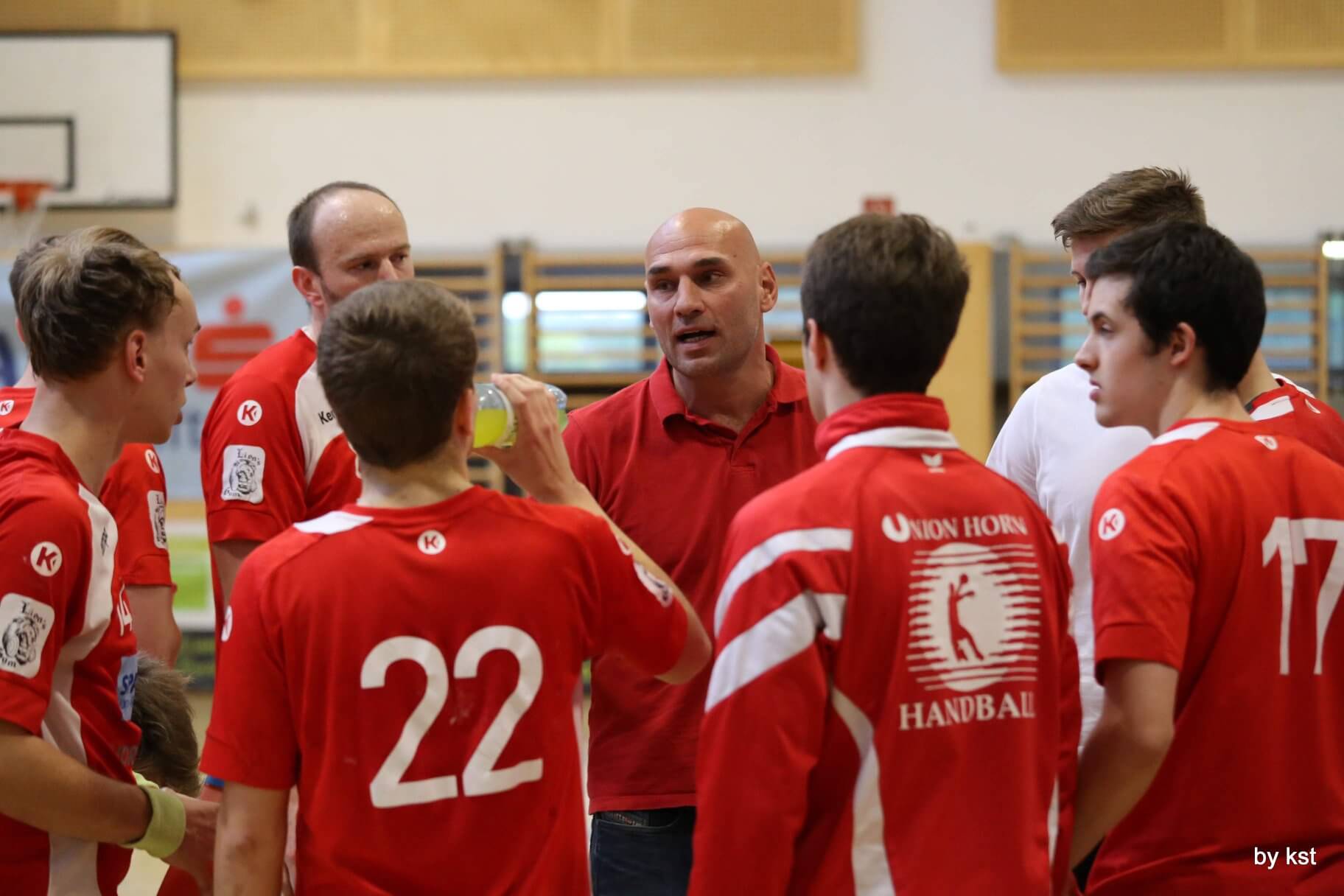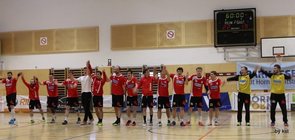 In der zweiten Hälfte ein Spiel auf Augenhöhe. Horn kam konzentriert aus der Kabine. Die Führung blieb bei Horn, aber immer nur mit plus einem Tor. In der 50sten Minute die erste Führung für den Gegner Perchtoldsdorf – neuer Spielstand 17:18. Wieder der Ausgleich und wieder die Führung für die Gäste. In dieser Phase (ca. 53ste Minute) verletzte sich auch noch Moritz Steinhauser beim Spielstand von 19:19 und fiel für den Rest des Spieles aus. Horn wollte den Sieg! 3 Treffer in Folge war die Antwort nach dem Ausfall von Moritz Steinhauser. Lochner Florian 54ste Minute20:19, David Capek 56ste Minute 21:19 und nochmals David Capek 58ste Minute zum Endstand 22:19.
