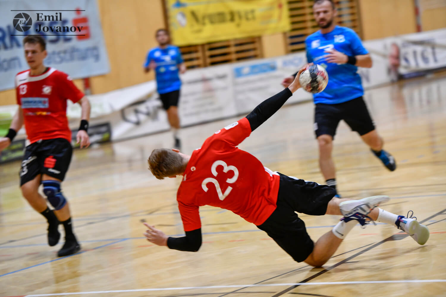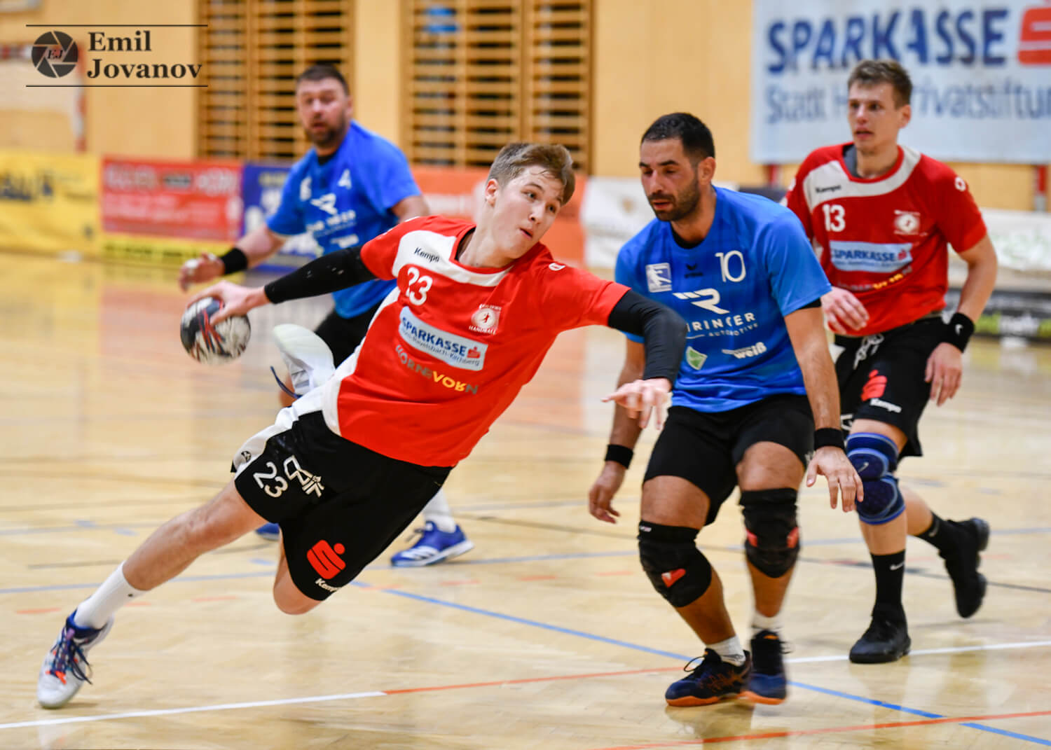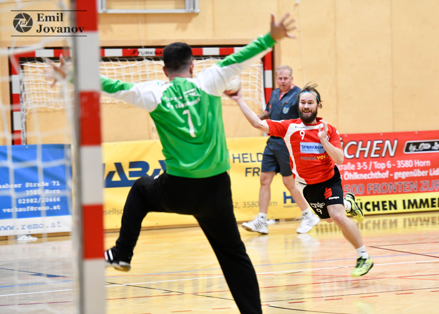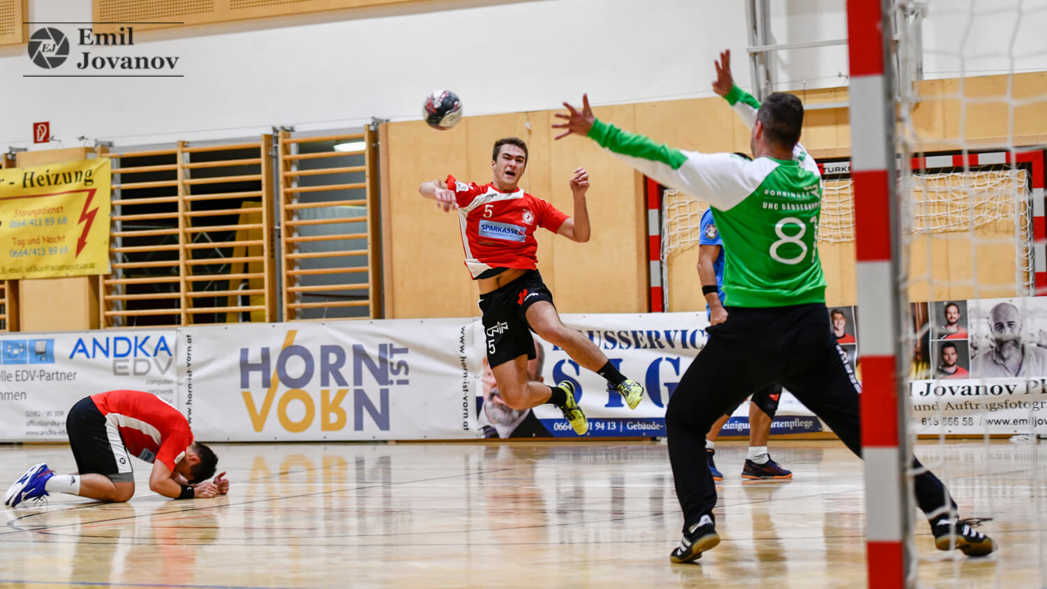 „Es war über 45 Minuten ein sehr gutes Spiel von uns. Dann haben wir, den Sieg vor Augen, etwas abgeschaltet, und es ist doch noch einmal knapp geworden. Dennoch war der Erfolg nicht gefährdet“, sagte Betreuer Herbert Steinhauser nach dem 32:31 gegen Gänserndorf. Mit dem Sieg übernahmen die Horner sogar die Tabellenführung – allerdings mit einem Sieg mehr als die SG Langenlois/Krems und Gänserndorf. Nach einem ausgeglichenen Beginn übernahmen die Gastgeber die Kontrolle über das Spiel. Nur ein einziges Mal – 2:3 in der 4. Minute – lagen die Horner Handballer zurück. Bis zur Pause erspielte man sogar einen Vorsprung von sieben Treffern. „Wir haben vor allem im Angriff eine sehr gute Leistung geboten. Die Wurfausbeute war ausgezeichnet“, so Steinhauser. Wesentlich an der guten Trefferquote mitbeteiligt war Moritz Steinhauser, der als Topscorer auf elf Tore kam. In der zweiten Halbzeit änderte sich zunächst wenig am Spielverlauf. Die Gastgeber kontrollierten die Partie, führten acht Minuten vor Schluss noch mit „plus sieben“. Während Horn noch einige Konzentrationsfehler einbaute, erwachte der Kampfgeist der Gänserndorfer. Die Gäste arbeiteten sich Tor um Tor heran. Doch die Zeit arbeitete zugunsten der Gastgeber, obwohl sie in den letzten 90 Sekunden noch drei Tore kassierten. Steinhauser: „Das Ergebnis war zwar knapper als der Spielverlauf. So eine unkonzentrierte Schlussphase dürfen wir uns dennoch nicht erlauben.“