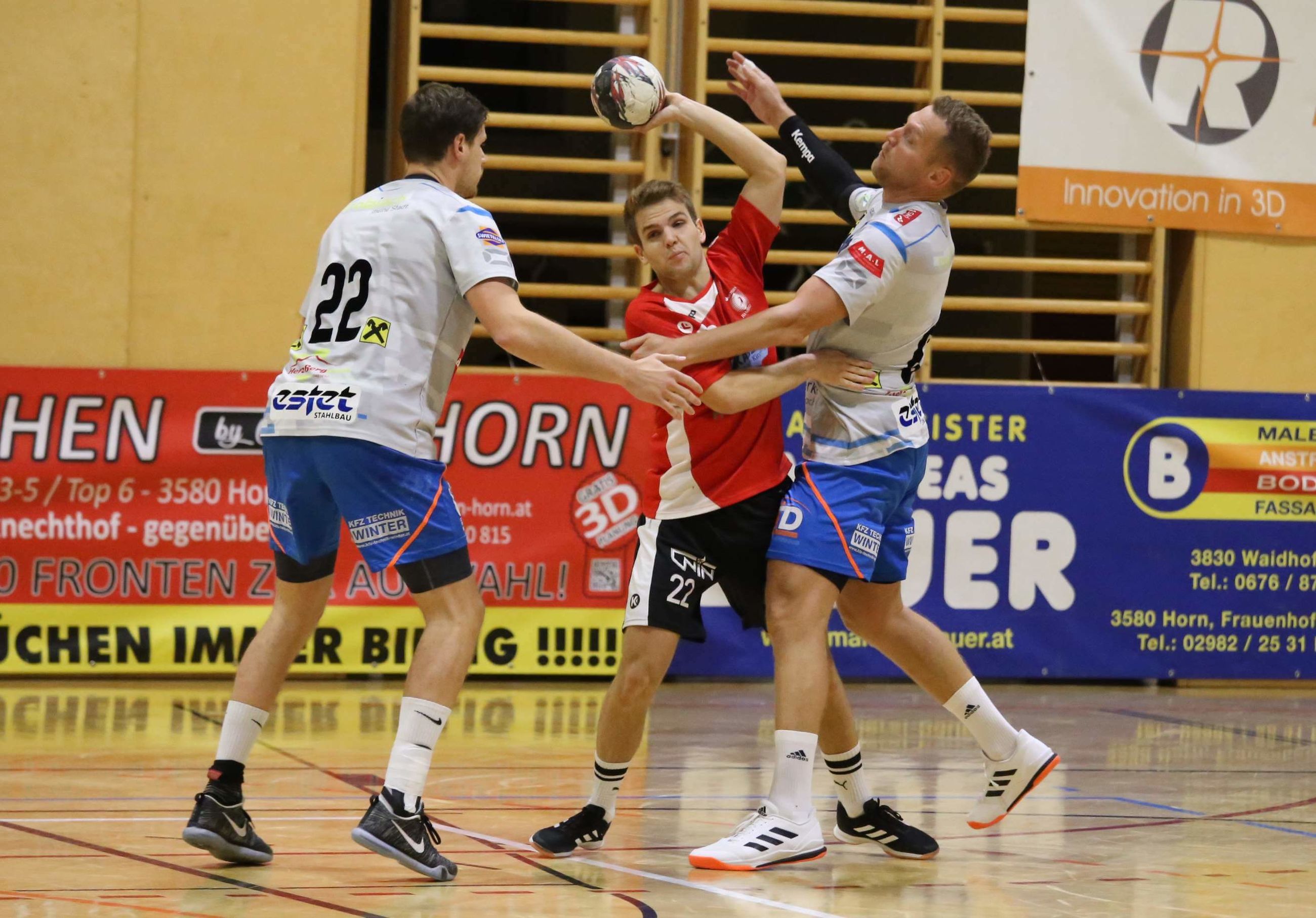 „Es war ein sehr interessantes Match, das uns auf jeden Fall weiterbringt. Wir haben uns gut verkauft und waren zwischendurch knapp dran. Ein Sieg war jedoch nicht drin. Dafür war der Gegner zu stark“, sagte Betreuer Herbert Steinhauser nach der Niederlage in der ersten Runde des ÖHB-Cups gegen Bundesligist Trofaiach. Die Horner starteten mit viel Respekt vor dem namhaften Gegner, benötigten rund zehn Minuten, um ihren Rhythmus zu finden. Nach dem 0:4-Rückstand spielten die Gastgeber jedoch gut mit und hielten den Rückstand bis zur Pause mit „minus drei“ in Grenzen. Nach einem schwachen Start in Hälfte zwei – die Gäste erzielten die ersten drei Treffer – folgte die beste Phase der Horner. Aus einer soliden Abwehr heraus kämpfte man sich wieder auf drei Tore heran, vergab aber auch einen Siebenmeter und drei Gegenstöße allein vor dem gegnerischen Torhüter. Danach ließ Trofaiach nichts mehr anbrennen und baute den Vorsprung bis zum Schluss noch auf sieben Treffer aus. „Die fehlende Konsequenz in dieser Phase hat uns die Chance auf ein noch besseres Ergebnis genommen. Trofaiach hat unsere Fehler besser genützt. Insgesamt waren sie körperlich stärker und es war ein Klassenunterschied erkennbar“, so Steinhauser. „Aber wir freuen uns über die interessante Erfahrung und ein schönes Handball-Event mit vielen Zuschauern.“ Die Horner Handballer haben nun ein Pause. Am 9. November geht es mit dem Heim-Derby gegen Eggenburg weiter.
