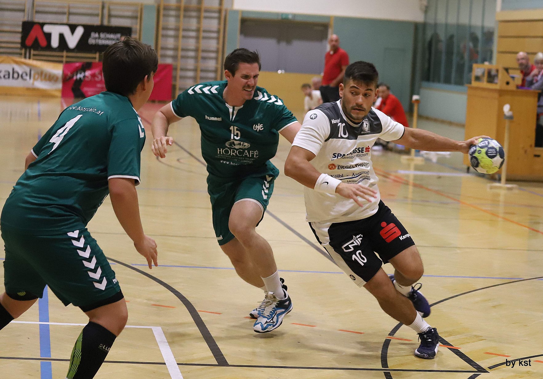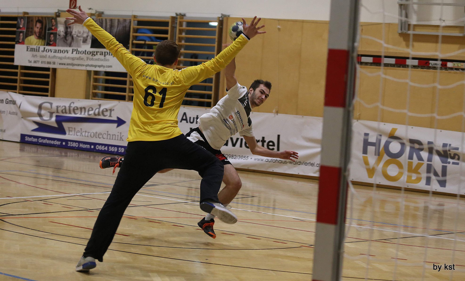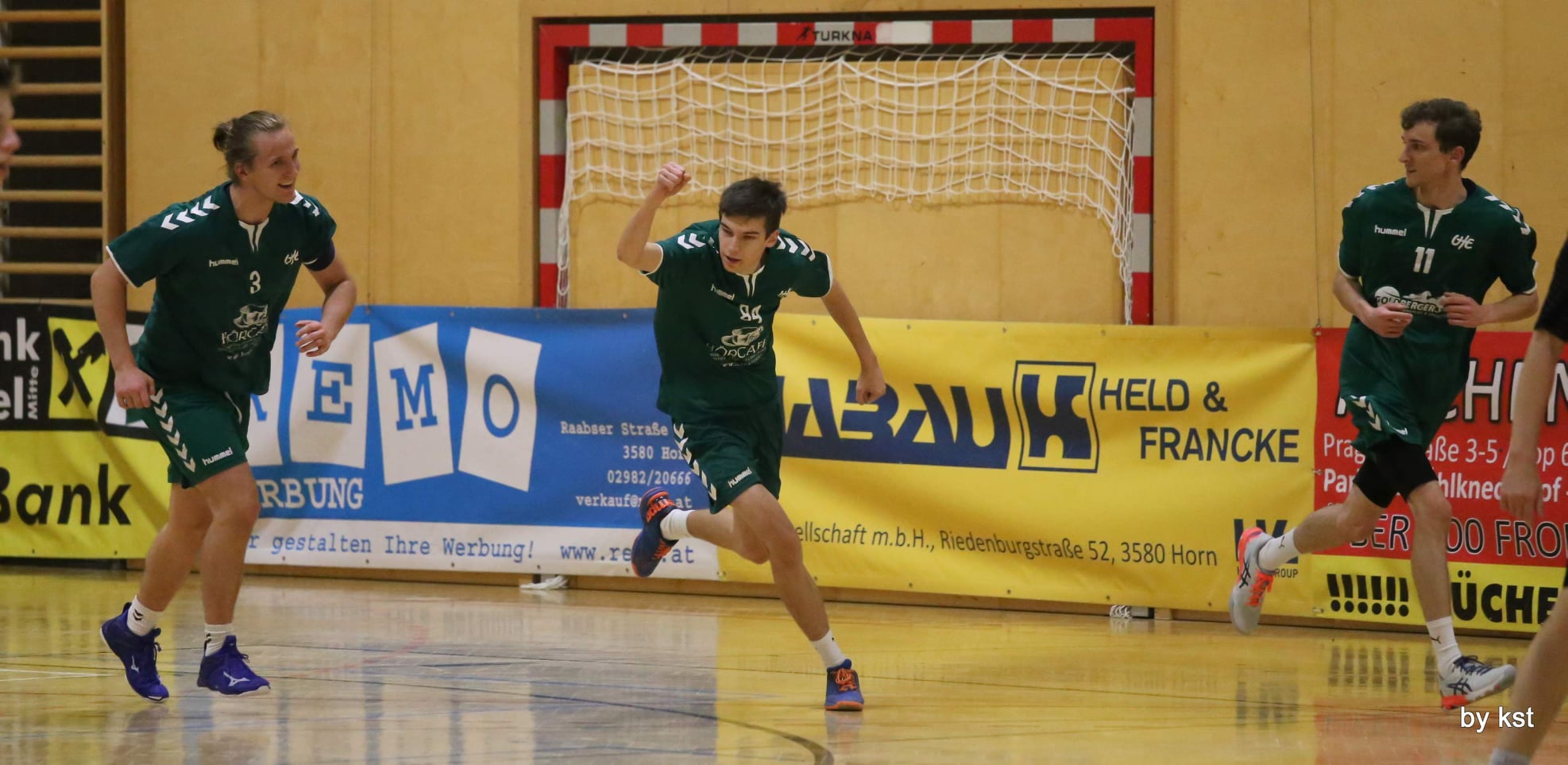 „Wir freuen uns sehr, dass wir nach dem Derby-Sieg im Cup auch in der Meisterschaft gewonnen haben“, sagte Trainer Martin Schierer nach dem Heimerfolg über Eggenburg. Das Spiel begann ausgeglichen wogte bis zur Pause hin und her, ohne dass sich eine Mannschaft entscheidend absetzen konnte. In Minute 14 etwa lagen Eggenburg mit zwei Toren voran, bis zum Halbzeitpfiff holten sich die Horner einen kleinen Vorsprung. „Eggenburg hat sehr körperbetont gespielt und wir haben in der Verteidigung nicht unser gewohntes Level gezeigt“, so Schierer. In der zweiten Halbzeit dann ein ganz anderes Bild: Horn erzielte die ersten vier Tore hintereinander und hatte das Spiel von diesem Zeitpunkt an im Griff. Bis zum Schluss wuchs der Vorsprung kontinuierlich an. „Nach der Pause haben wir sehr gut verteidigt und hatten die Partie im Griff.“ Auch im Duell der zweiten Mannschaften hatten die Horner mit 36:17 deutlich die Nase vorn.