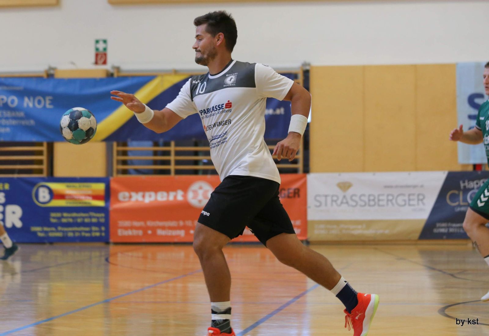 „Es war eine sehr gute Mannschaftsleistung. In den ersten 40 Minuten waren wir im Angriff sehr gut unterwegs. Danach ist die Spannung etwas abgefallen und das Ergebnis ist etwas knapper geworden. Dennoch sind wir sehr zufrieden und freuen uns über den Finaleinzug“, sagte Trainer Martin Schierer nach dem Heimerfolg gegen Eggenburg. Nach einem ausgeglichenen Beginn zogen die Horner mit drei Toren in Folge erstmals auf 7:3 davon. Zwei weitere Serien – einmal drei Treffer und kurz vor der Halbzeit sogar fünf – brachten den Gastgebern eine beruhigende 23:14-Pausenführung. In der zweiten Halbzeit baute Horn die Führung bis auf das zwischenzeitliche Maximum von elf Toren aus, ehe die Eggenburger in der Schlussphase noch etwas aufkamen und Ergebniskosmetik betrieben. „Von den Torhütern weg hat die ganze Mannschaft ausgezeichnet gespielt. Wir stehen wieder im Finale des NÖ-Cups, darauf kann man schon stolz sein“, freute sich Schierer. Nach den Titelgewinnen in den Jahren 2019 und 2021 (2020 wurde der Cup nicht fertig gespielt) gehen die Horner Handballer voller Vorfreude in das Finale gegen UHC Süddeck Tulln, das gegen Stockerau knapp mit 34:33 die Oberhand behielt. „Ein neuer Gegner, wir kennen die Mannschaft noch nicht ganz genau, nur einzelne Spieler. Wir werden aber in erster Linie schauen, dass wir gut trainieren und uns optimal auf das Finale vorbereiten“, so Schierer.