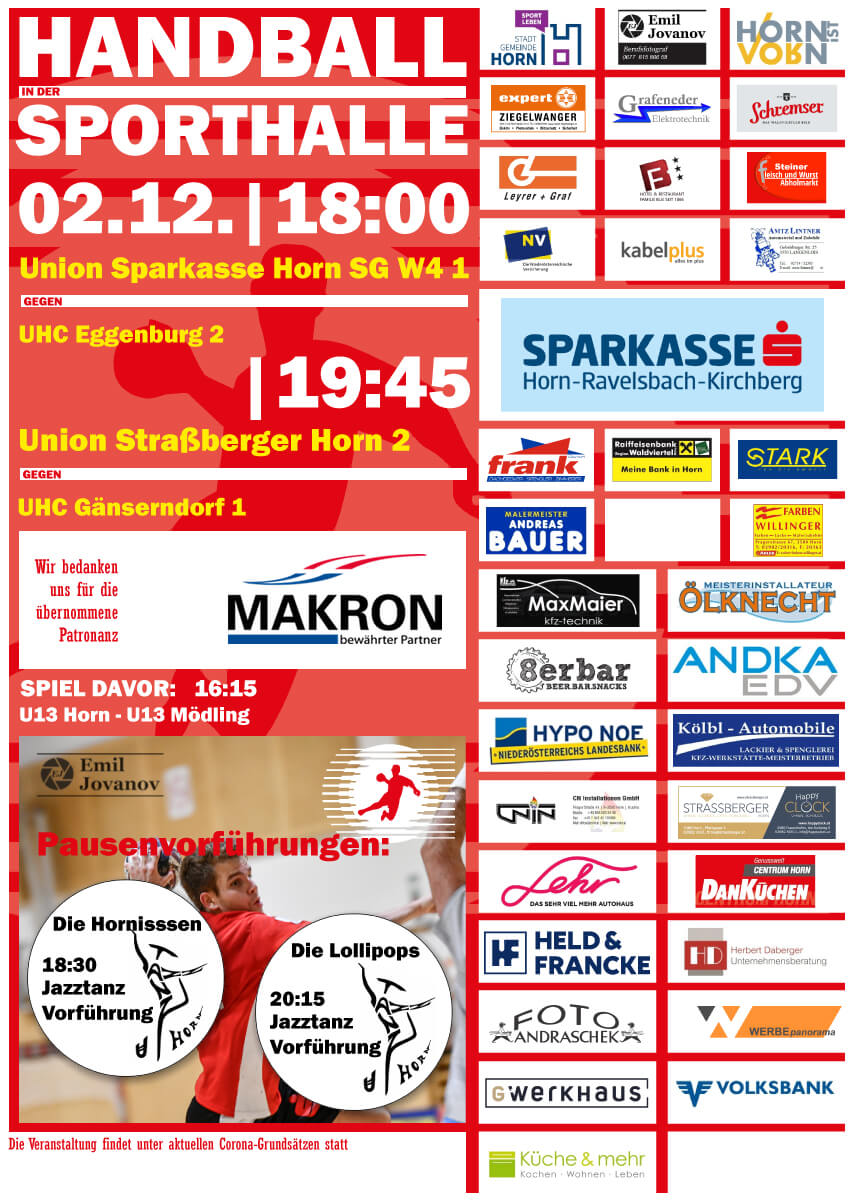 Samstag ,02.12.2023, 18:00hUnion Sparkasse Horn SG W4 gegen UHC EggenburgPatronanz: Makron