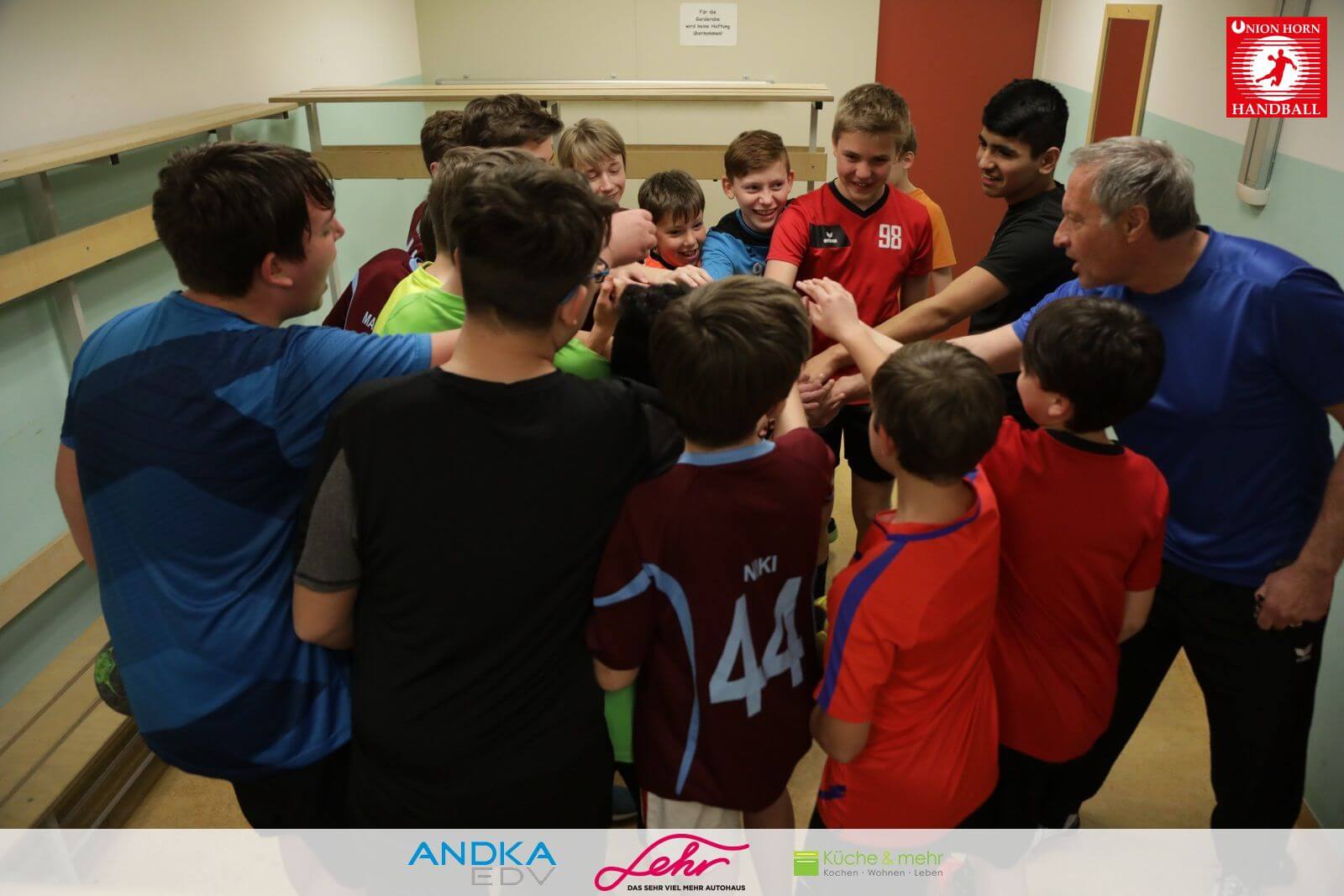 Auftakt zum Training war der „Kampfschrei“ in der Kabine - alle vereinten sich im Kreise, Hände zusammen und ein lauter gemeinsamer Schrei 'FÜR HORN'!