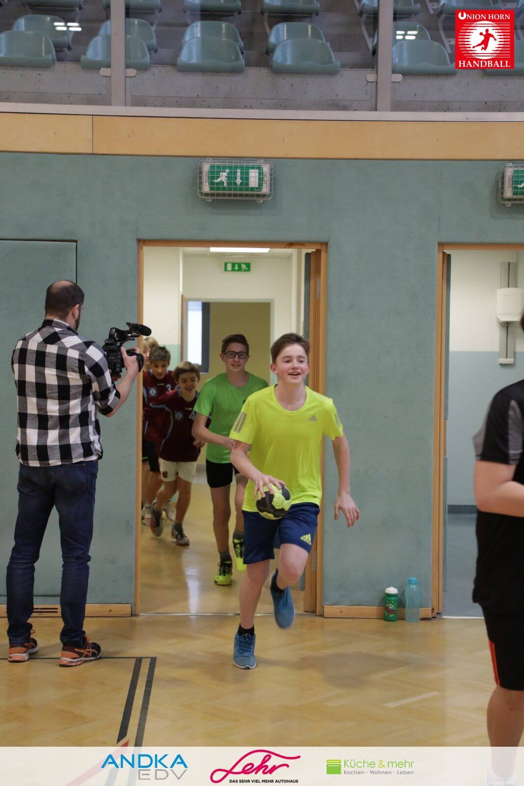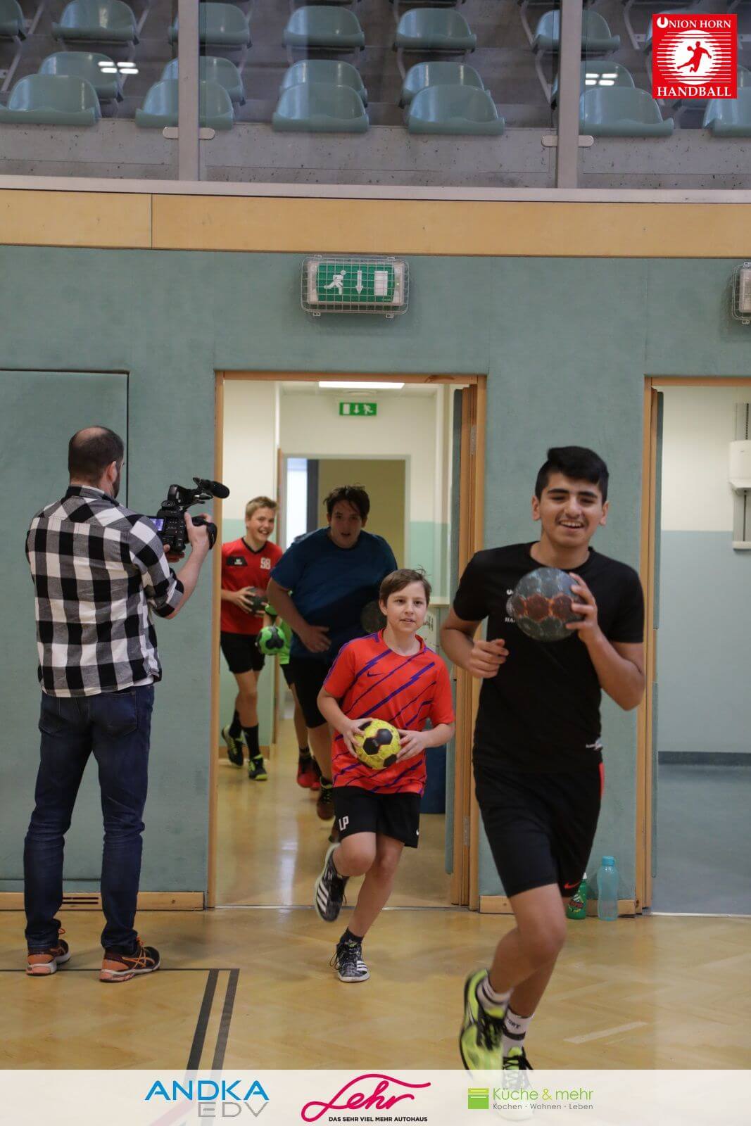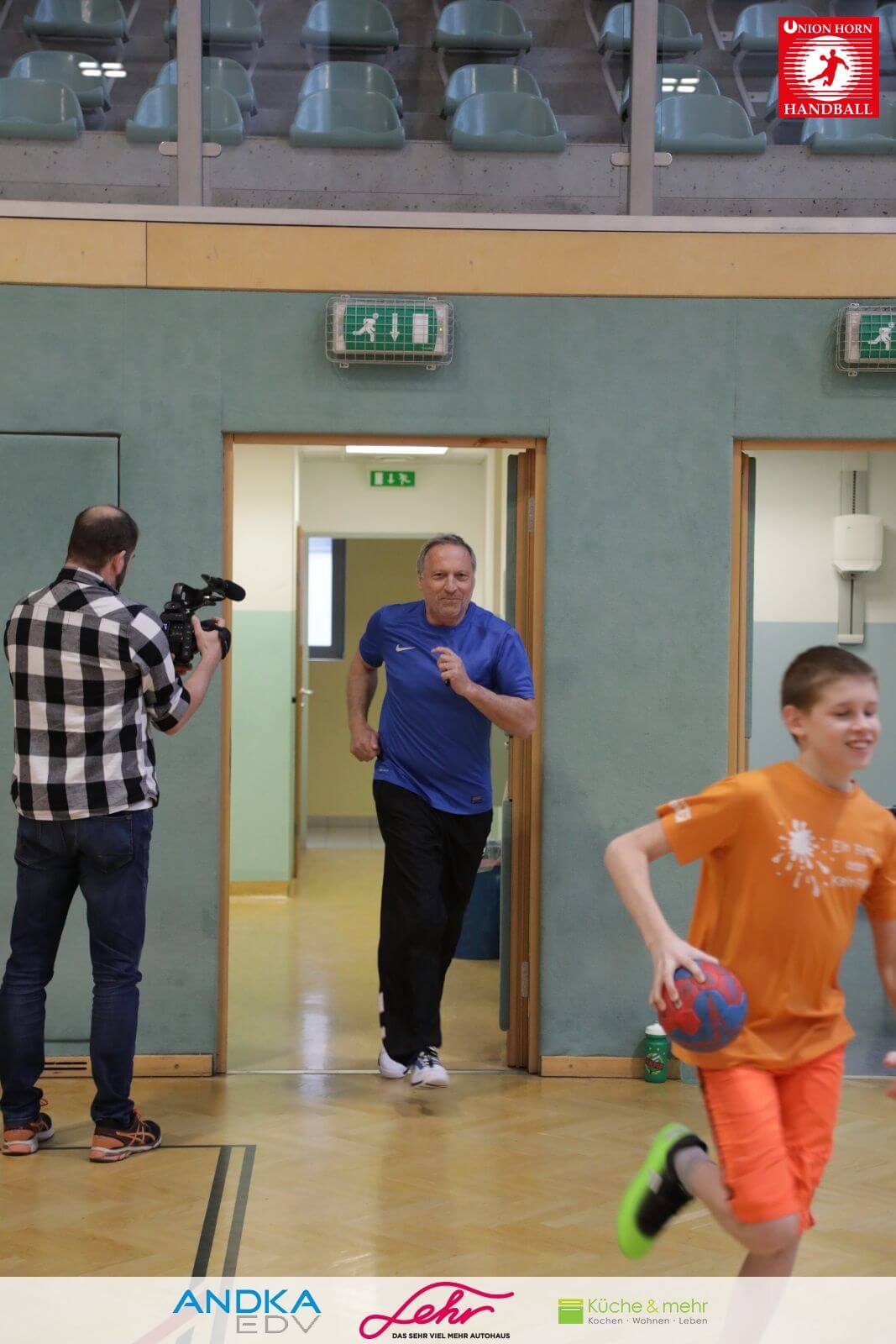 Gleich danach ein freudiges Rauslaufen in die Halle um mit der Aufwärmrunde zu beginnen.