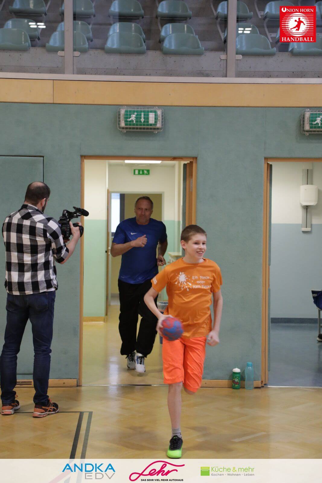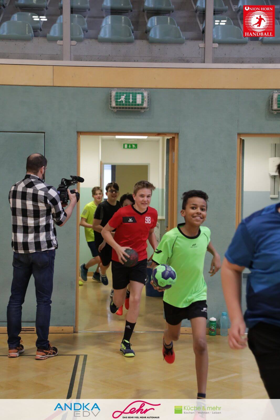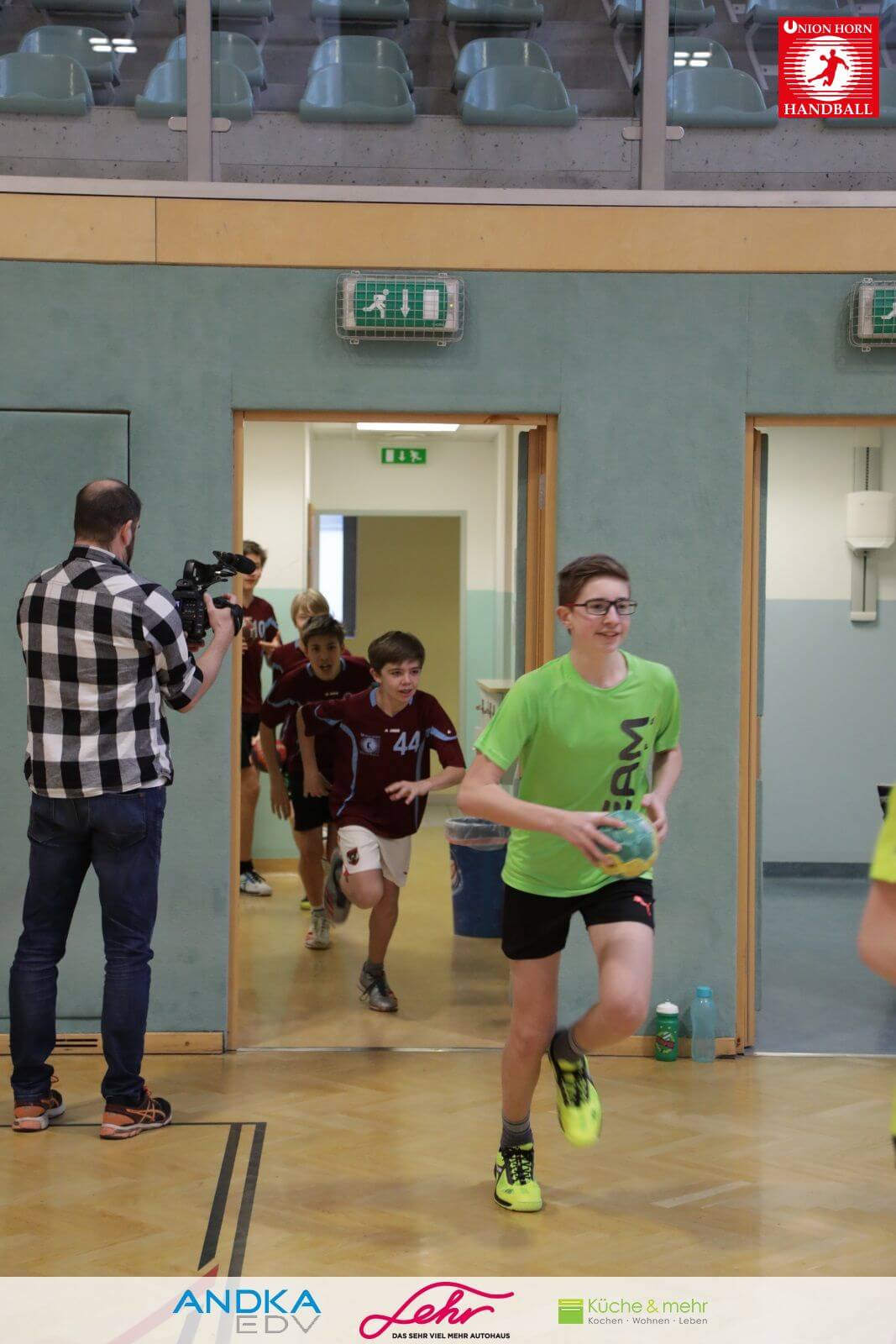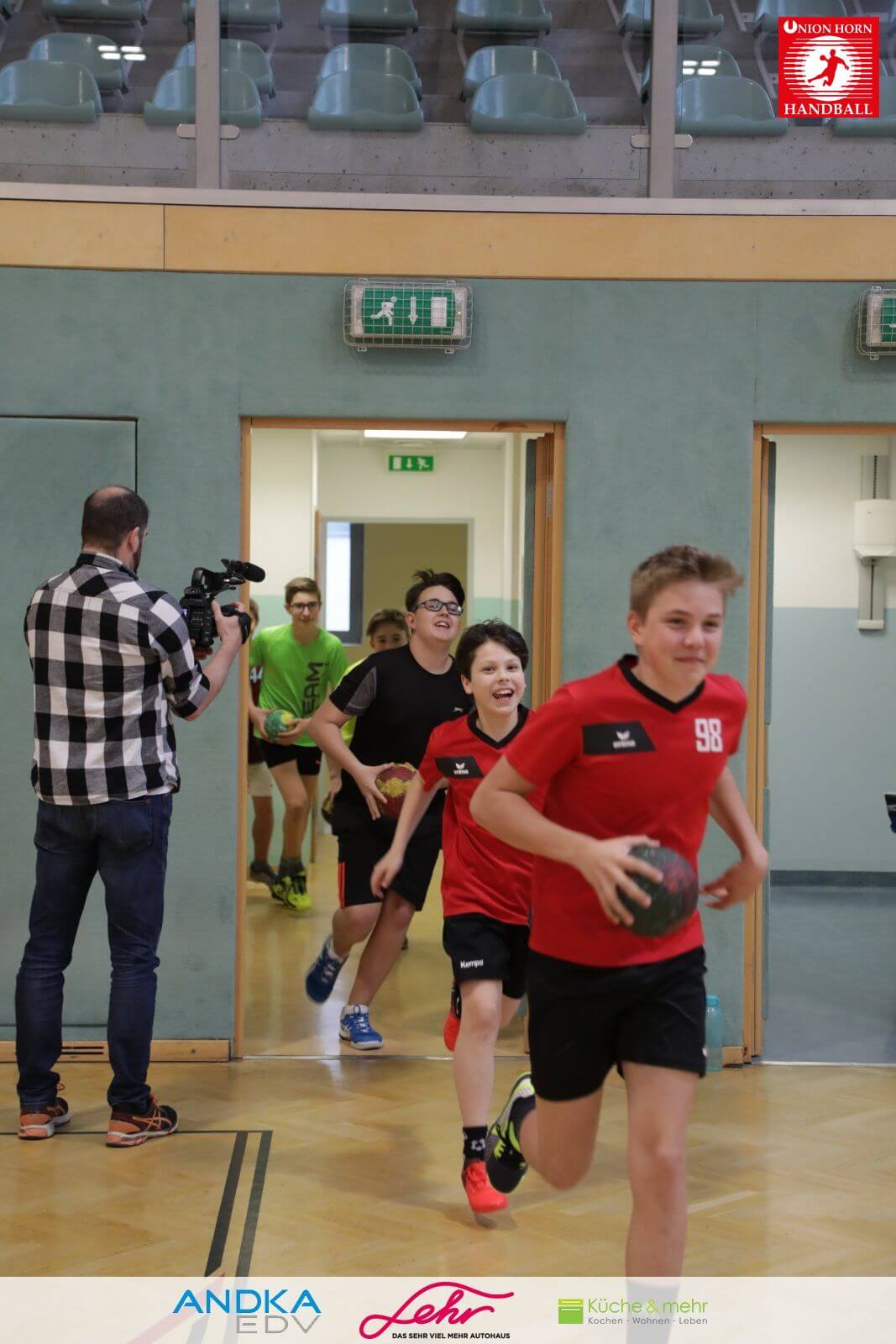 Gleich danach ein freudiges Rauslaufen in die Halle um mit der Aufwärmrunde zu beginnen.