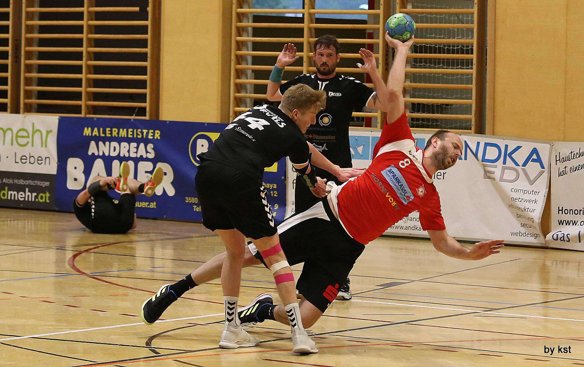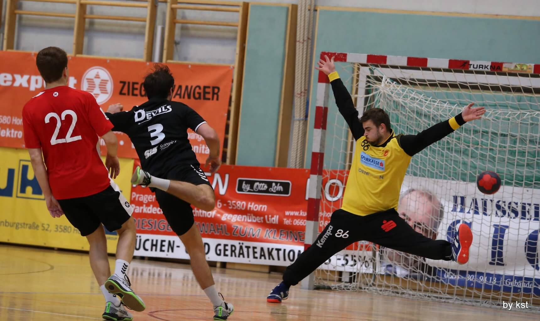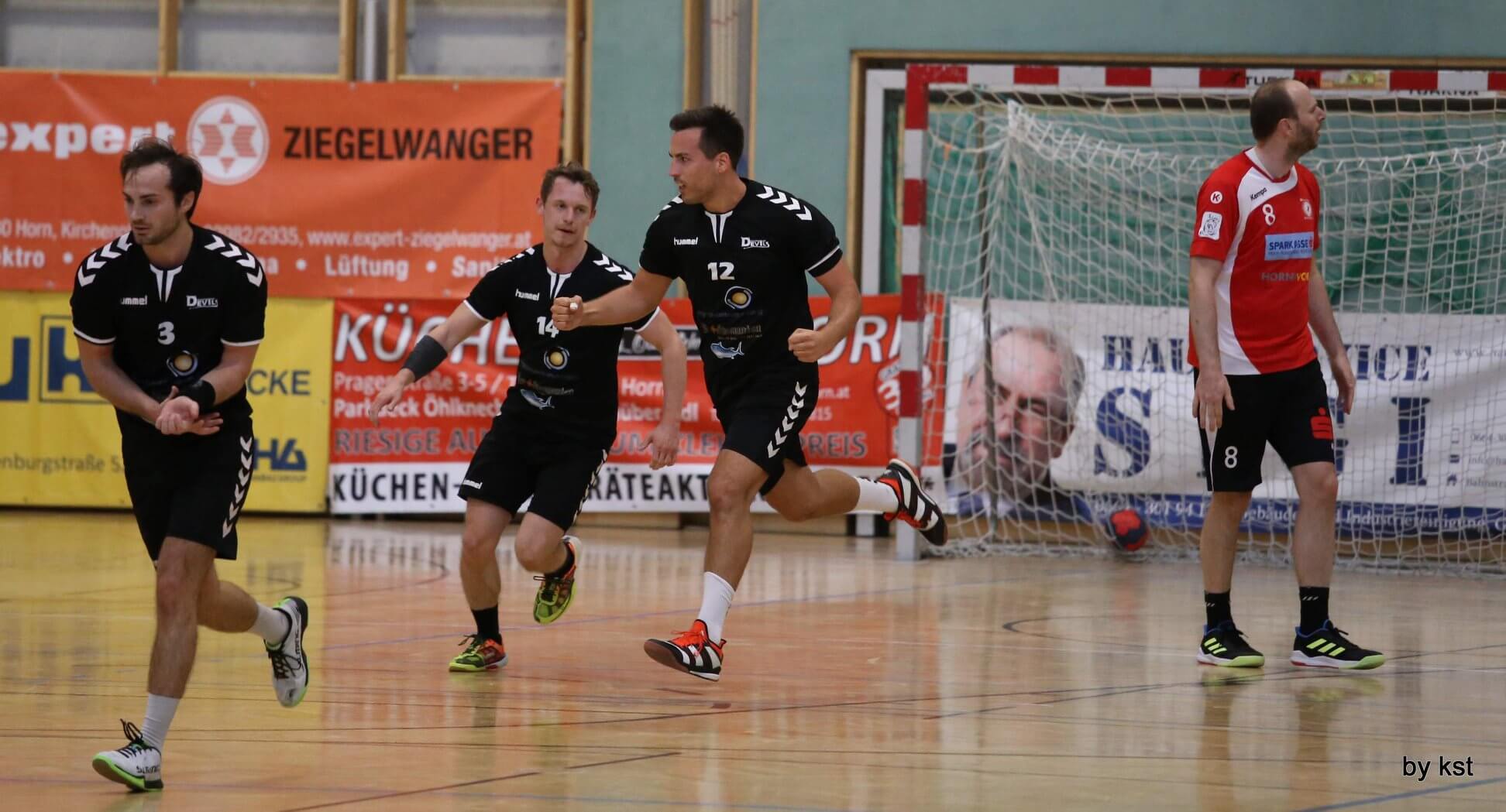 In der zweiten Hälfte ein Spiel auf Augenhöhe. Horn kam konzentriert aus der Kabine. Die Führung blieb bei Horn, aber immer nur mit plus einem Tor. In der 50sten Minute die erste Führung für den Gegner Perchtoldsdorf – neuer Spielstand 17:18. Wieder der Ausgleich und wieder die Führung für die Gäste. In dieser Phase (ca. 53ste Minute) verletzte sich auch noch Moritz Steinhauser beim Spielstand von 19:19 und fiel für den Rest des Spieles aus. Horn wollte den Sieg! 3 Treffer in Folge war die Antwort nach dem Ausfall von Moritz Steinhauser. Lochner Florian 54ste Minute20:19, David Capek 56ste Minute 21:19 und nochmals David Capek 58ste Minute zum Endstand 22:19.