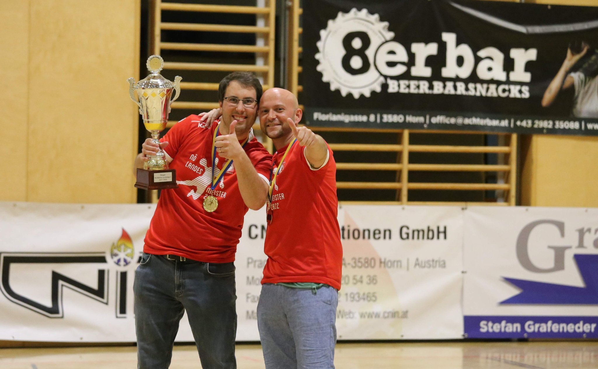 Die Gastgeber begannen allerdings sehr nervös und vergaben einige Chancen. Eggenburg ging mit 2:0 und etwas später mit 7:4 in Führung. Die Horner ließen sich aber nicht beirren und spätestens mit dem Ausgleich kurz vor der Pausensirene war klar, dass der Kampf um den Landesmeistertitel entschieden war. „Eggenburg hat bis zum Schluss gekämpft. Wir wollten aber nicht nur den Vorsprung verwalten, sondern zum Abschluss daheim auch noch einen Sieg einfahren“, so Schierer, der sich neben dem Landesmeistertitel und dem NÖ-Cupsieg auch über den Meistertitel der Zweier-Mannschaft freuen konnte. „Es kommen einige sehr gute Spieler nach. Überhaupt waren wir heuer im Kollektiv die beste Mannschaft, auf allen Positionen gut besetzt, mit einem sehr breiten Kader. Mit Michael Bünger und Moritz Steinhauser haben wir zudem zwei heimische Spieler mit extra Qualität, die auch in einer höheren Liga spielen könnten. Alles in allem darf man sagen: Wir sind ein verdienter Meister!“