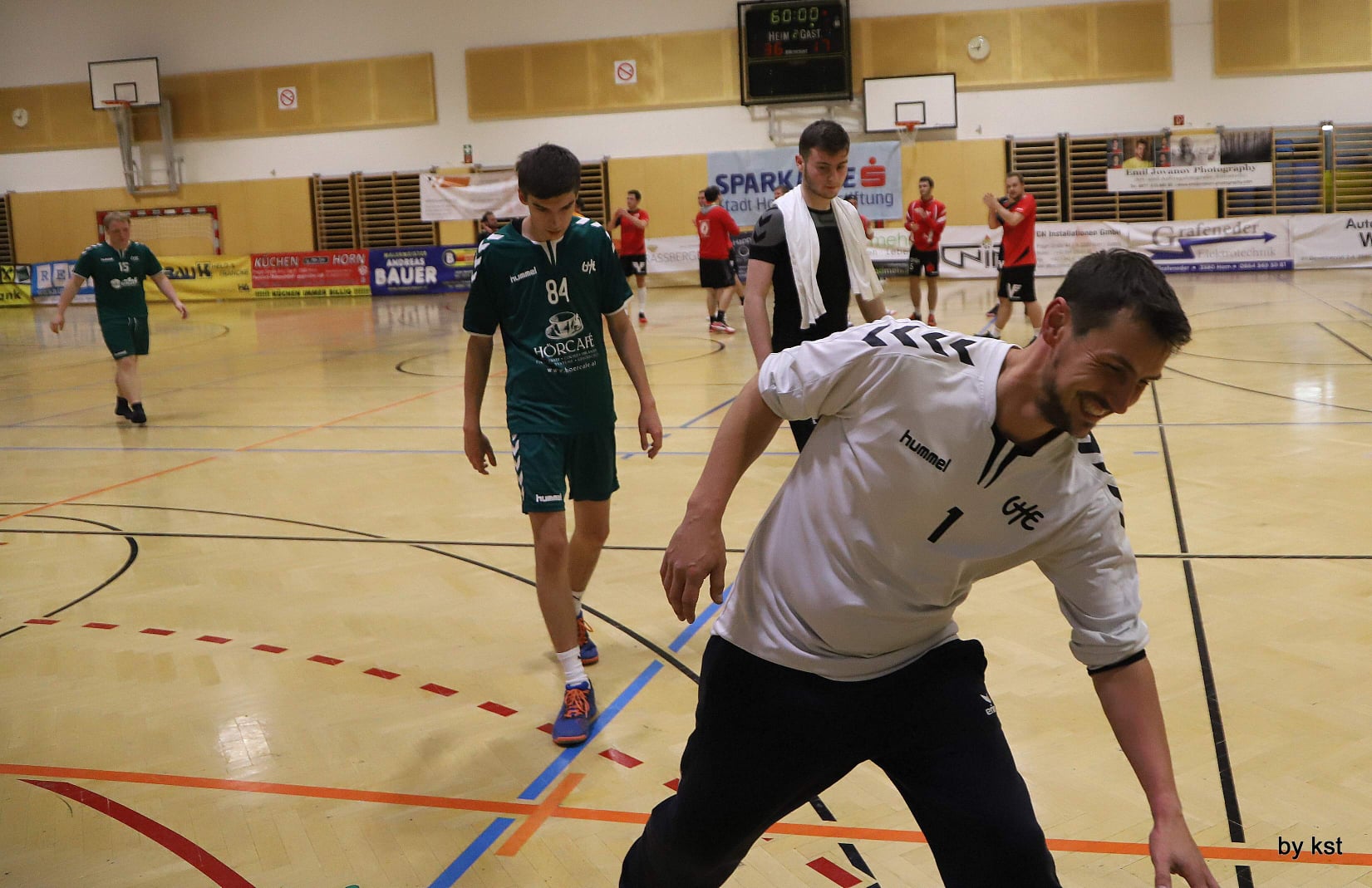„Wir freuen uns sehr, dass wir nach dem Derby-Sieg im Cup auch in der Meisterschaft gewonnen haben“, sagte Trainer Martin Schierer nach dem Heimerfolg über Eggenburg. Das Spiel begann ausgeglichen wogte bis zur Pause hin und her, ohne dass sich eine Mannschaft entscheidend absetzen konnte. In Minute 14 etwa lagen Eggenburg mit zwei Toren voran, bis zum Halbzeitpfiff holten sich die Horner einen kleinen Vorsprung. „Eggenburg hat sehr körperbetont gespielt und wir haben in der Verteidigung nicht unser gewohntes Level gezeigt“, so Schierer. In der zweiten Halbzeit dann ein ganz anderes Bild: Horn erzielte die ersten vier Tore hintereinander und hatte das Spiel von diesem Zeitpunkt an im Griff. Bis zum Schluss wuchs der Vorsprung kontinuierlich an. „Nach der Pause haben wir sehr gut verteidigt und hatten die Partie im Griff.“ Auch im Duell der zweiten Mannschaften hatten die Horner mit 36:17 deutlich die Nase vorn.